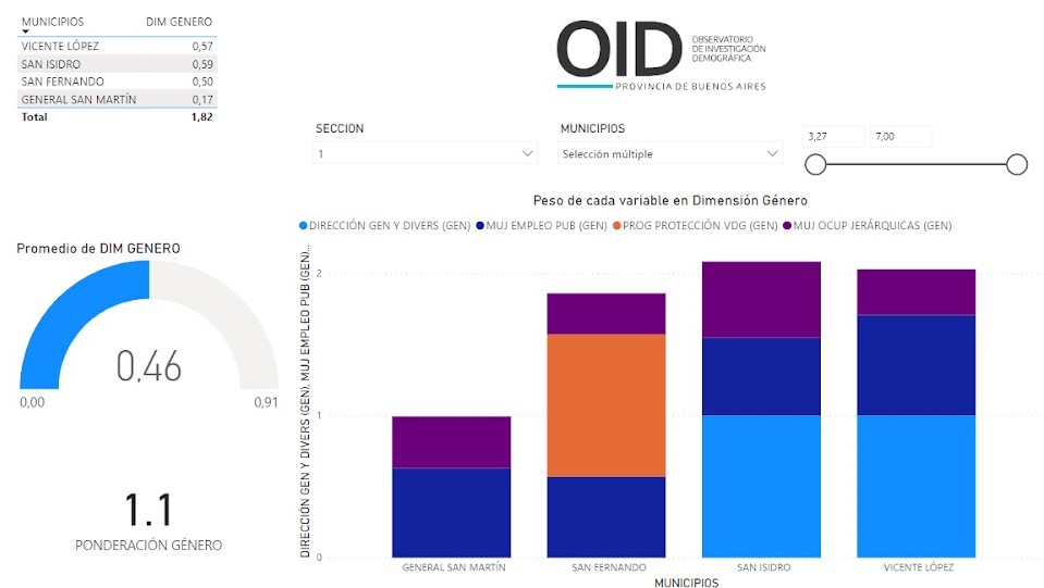 Con datos del ISSD elaborado por el OID, la dimensión género en el distrito sanisidrense (0,53) es la que mayor déficit registra, comportando valores por debajo de la media seccional (0,54).