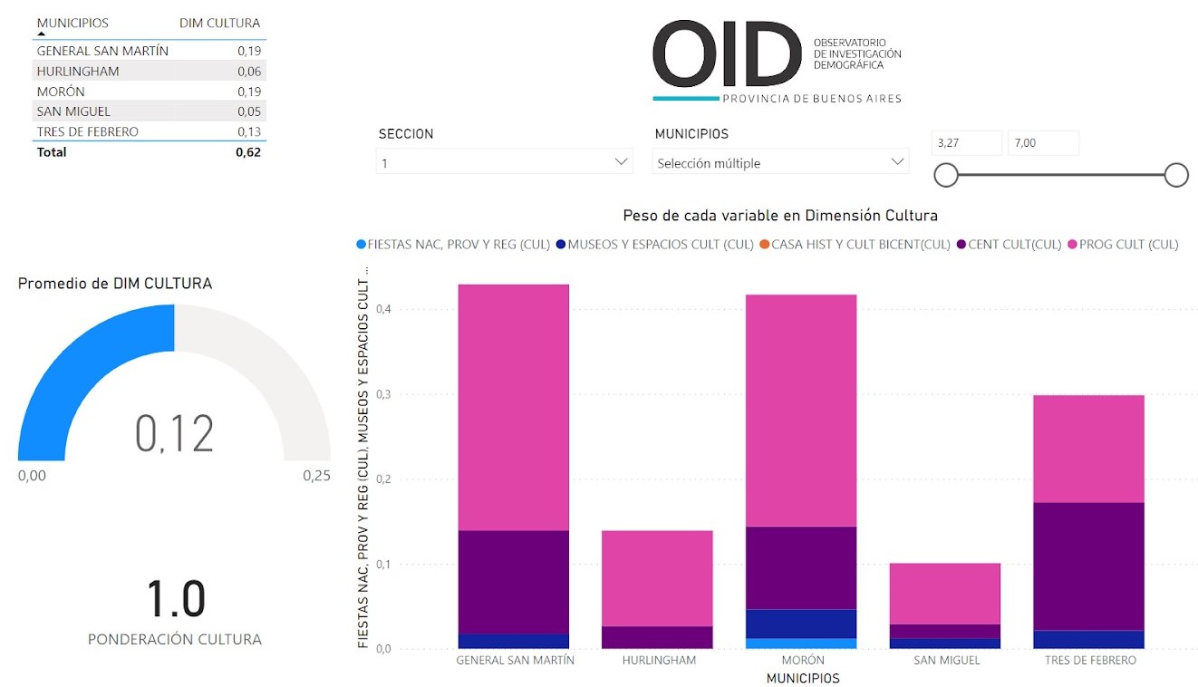 En la comparativa entre municipios, al interior de la sección electoral primera, Tres de Febrero registra en la dimensión cultural un promedio de 0,13 – esto significa – apenas por debajo del promedio seccional (0,14) y marcadamente inferior al promedio provincial (0,21).