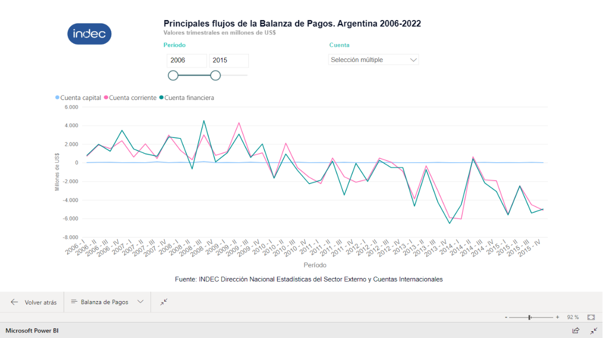 Aquí es donde la dolarización se convierte en una paradoja por dos motivos. El nuevo modelo de acumulación que presentaba una ruptura ideológica con el menemismo se encuentra con el problema de la dolarización de la economía a través de otro botón del control de mando que comenzaba a titilar. Controlar la dolarización en esta lógica de los gobiernos kirchneristas, más precisamente el primer mandato de Cristina Fernández, fue una búsqueda de aplacar la restricción externa reinstalando una política de control de cambios conocida como “cepo”, pero esto funcionaba como parche para que el aire haga presión en otro lado y vuelva a pinchar la rueda.